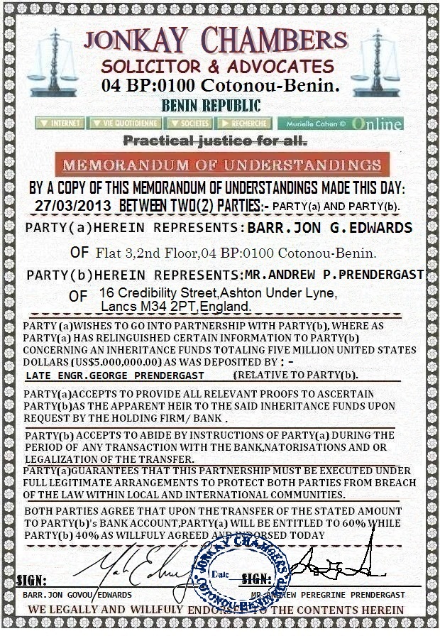 Please take your time to read and understand it all,I will start by introducing myself properly to you;I am Mr.Jon Edwards,a citizen of the republic of Benin.I am a lawyer by profession.